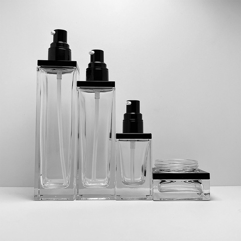 40ml Square Glass Toner Bottle Travel-Safe Recipiente separado para creme facial Essência e cosméticos