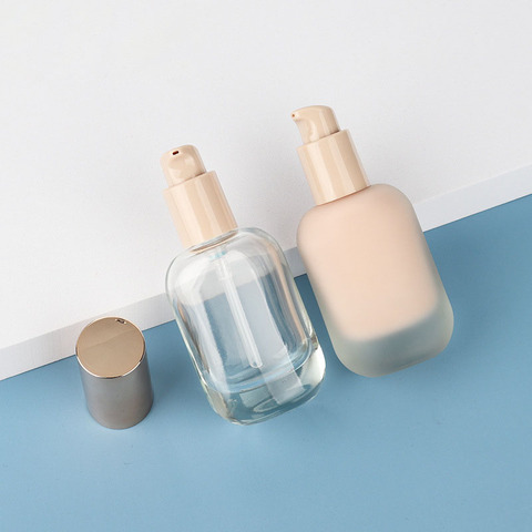 Deluxe 40ml 100ml 120ml Black Frosted Glass Pump Garrafa para Fundação Vidro Loção Garrafa com Shiny Black Pump Cover