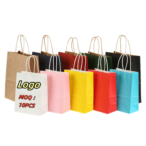 Recycelbare benutzerdefinierte braune und weiße Öko-kraftpapier-Handtuch auf Lager versandfertige Papiertüten mit Ihrem Logo gedruckt