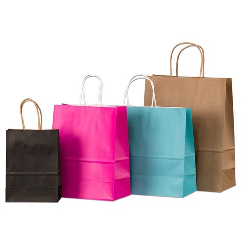 Großhandel Brown Kraft Papiertüten 100 Stück MOQ-Druck Kunden spezifische Designs Fast Food Takeout Twist Handle Shopping Inventar Taschen