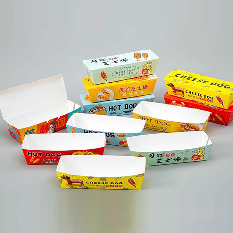 Benutzer definierte Hot Sales Treat Verpackung Taschen Flacher Boden Braun oder Weiß Kraft Takeaway Food Sandwich Container Deckel Hot Dog Box